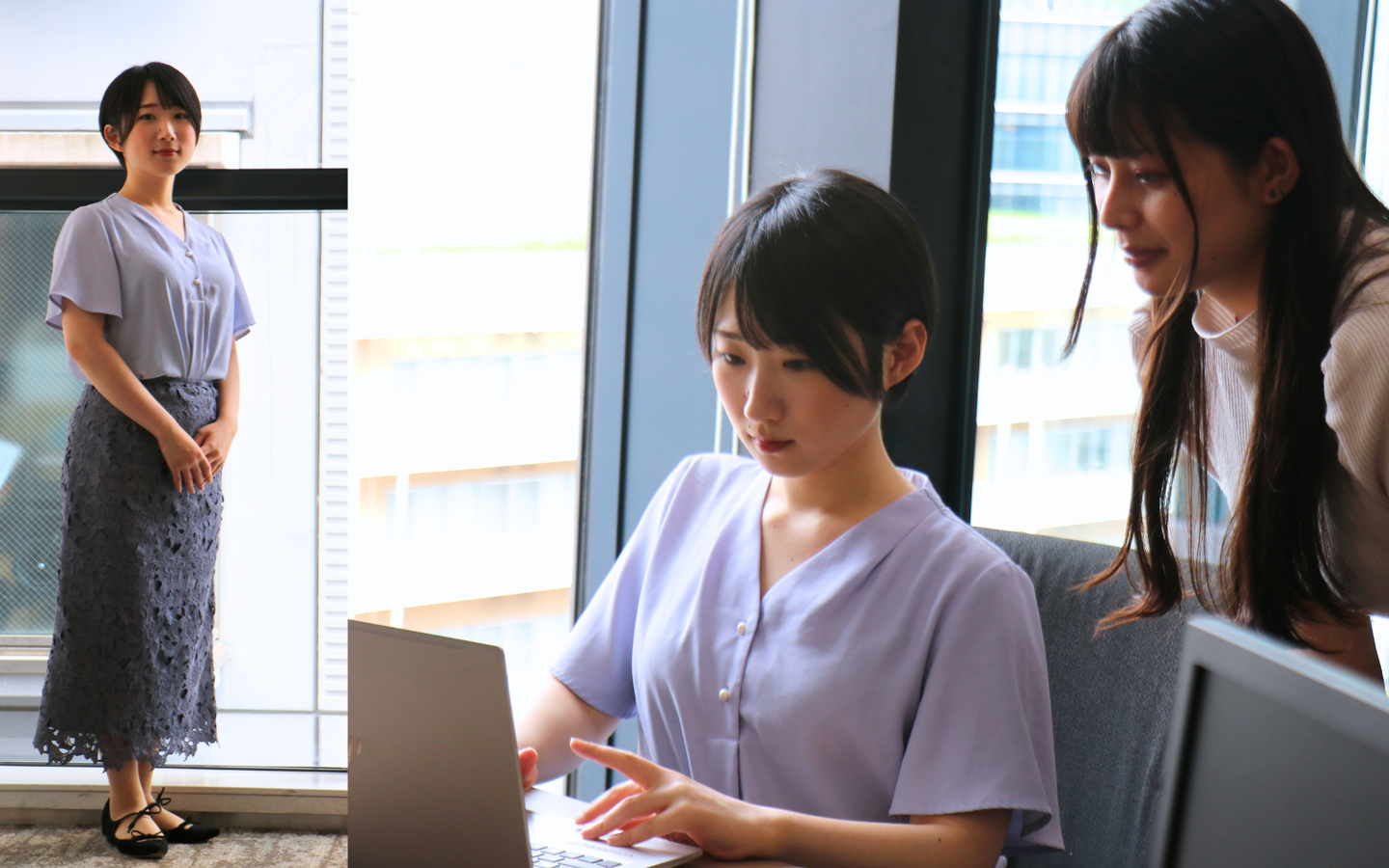 座り仕事が続くデスクワークにはヒールのない靴やスニーカーなど、楽に履けるものがおススメ。場面に合わせて工夫してみましょう。