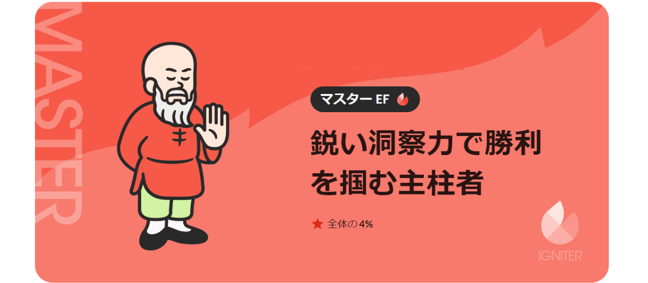 営業グループマネージャーのYさんは【マスターEF】。全体の4%しかいないレアな結果です。
