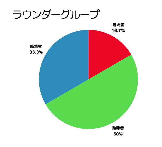 結集者(青)も人の力を引き出したり意見をまとめる特徴があるため、これもラウンダーの業務特性にはぴったりですね。