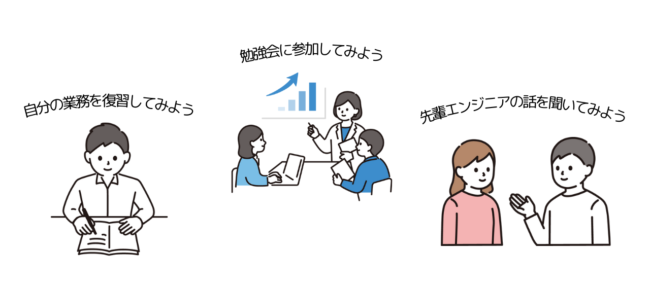 スキルを身につけると同時に先輩エンジニアと交流を持つことで視野を広げることもできます。