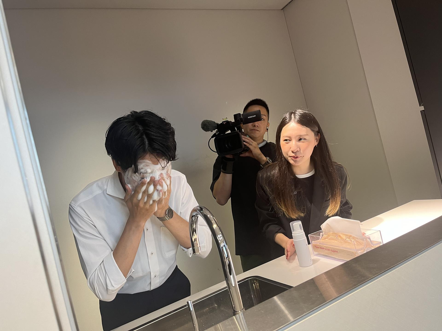 実際にMULCの洗顔フォームを使用して洗顔してもらいました!