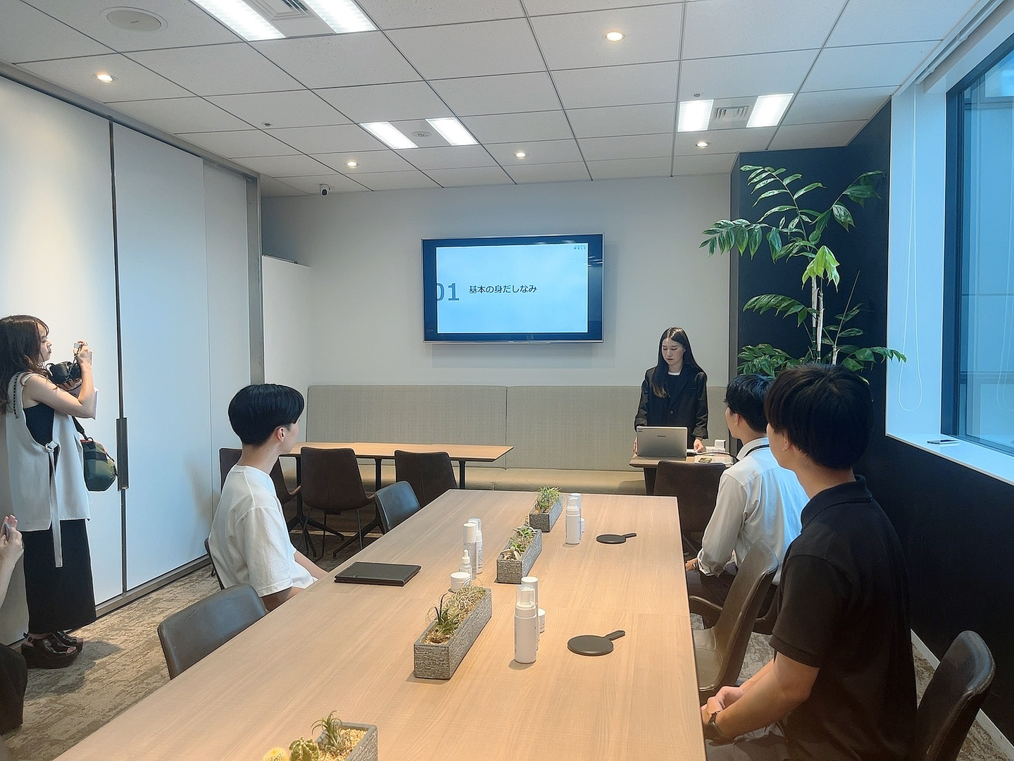 当日はGOOYAのオフィスにて、MULC商品開発担当の 福本 沙夜香 様 を講師としてお招きし、スキンケアの基礎から眉毛のお手入れ方法まで詳しく教えていただきました!