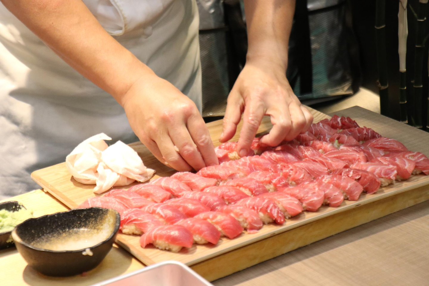 オフィスにお招きした寿司職人さんによって大量のお寿司を握っていただきます!