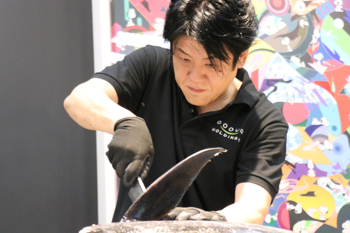 実は社長自らマグロを捌いてくださっていました!(直接お魚捌きを見るのは大迫力ですw)