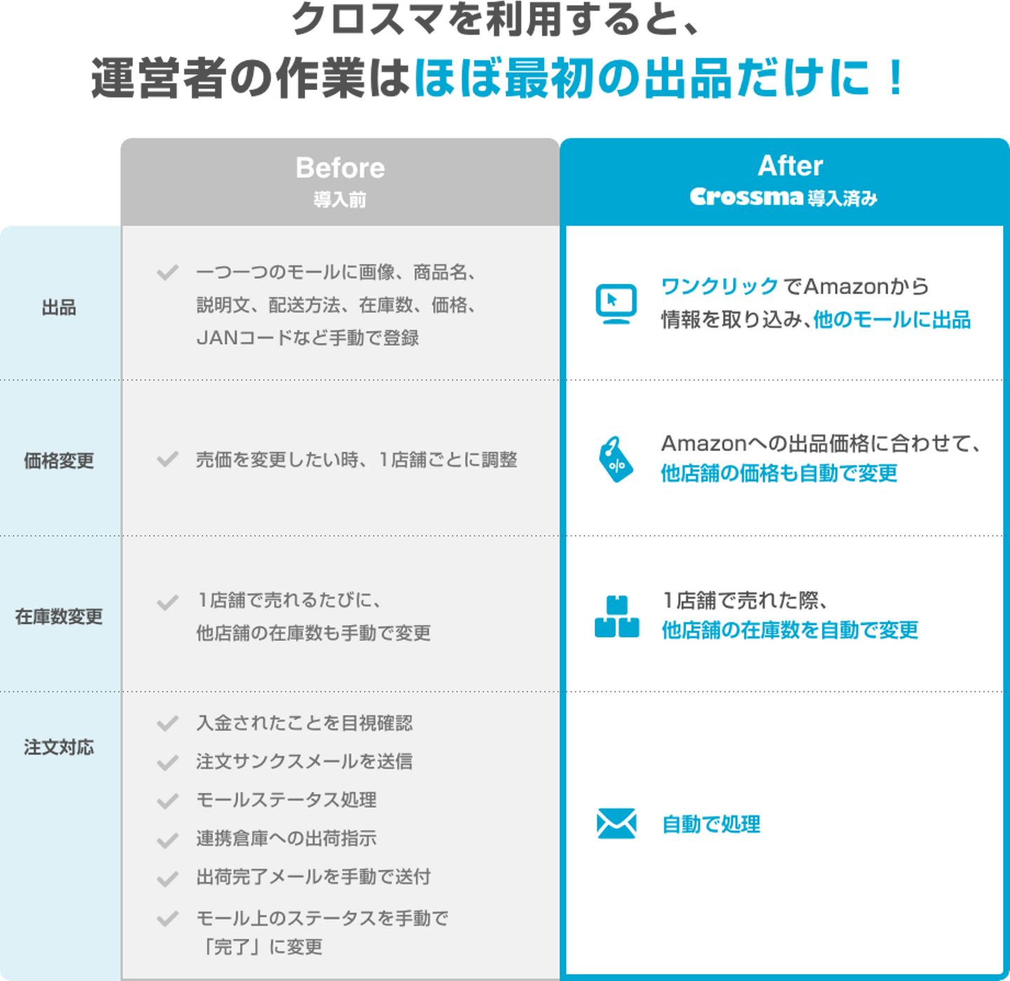 クロスマとは複数モール運営の効率化ツールです。