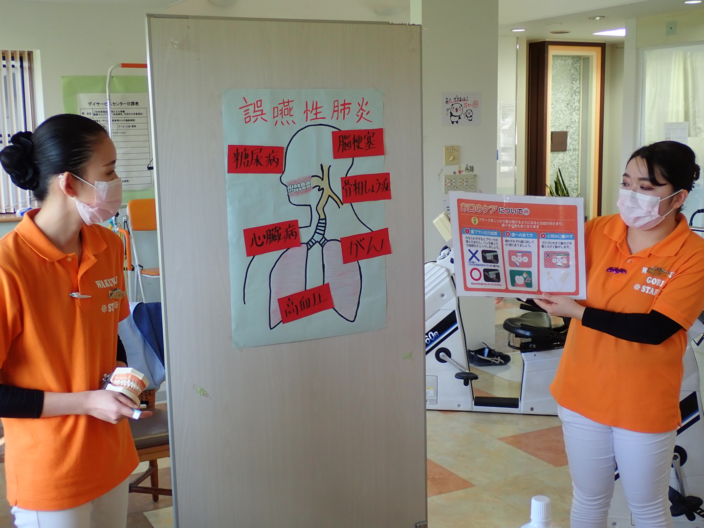 先日、クリニックの目の前(移転前の山口歯科クリニック)にあるデイサービスの施設から要請があり、GDCの歯科衛生士がボランティアで施設利用者に口腔内のケアの重要性をお話ししに行ってきました!!