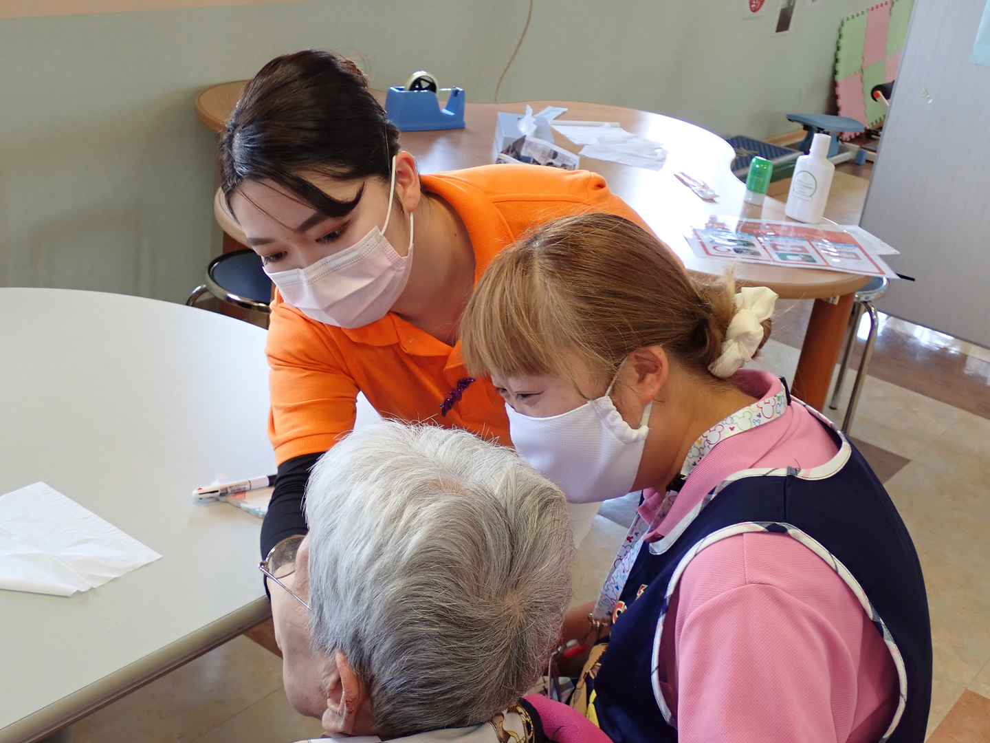 施設利用者の方に、お口の中のケアと全身の病気の関係を説明し、実際にどのようにケアしたら良いのか?等お話しました。