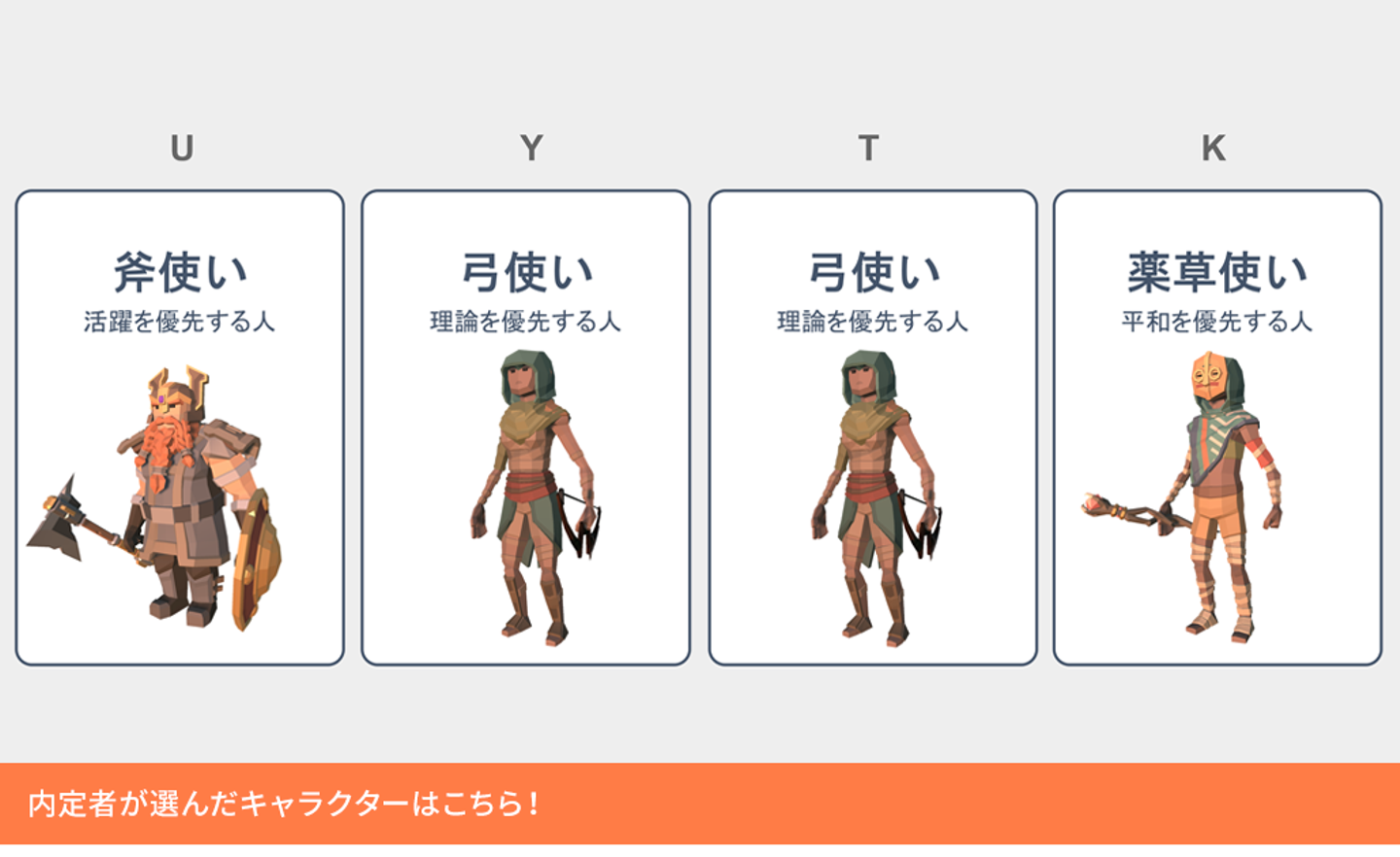 こちらのワークショップは既存社員もおこなったワークとなりますが、チームによっては全員同じキャラクターというチームもありました!