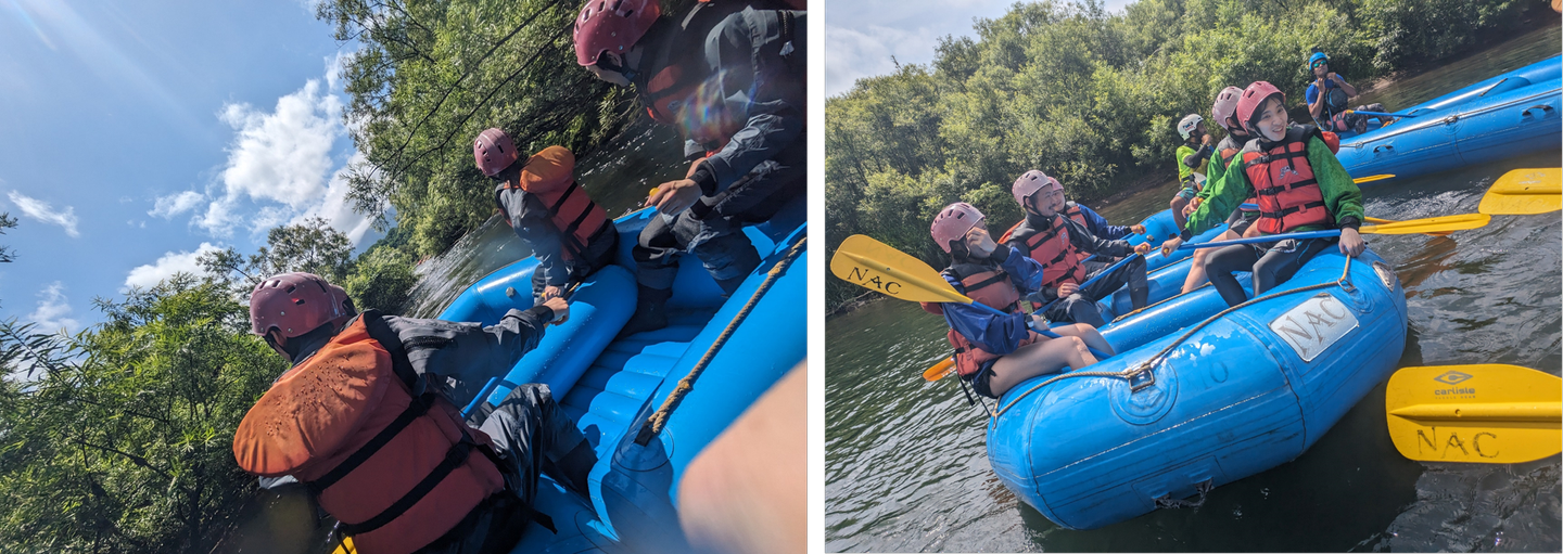 ラフティングでは川をオールで漕いでゴールを目指します。