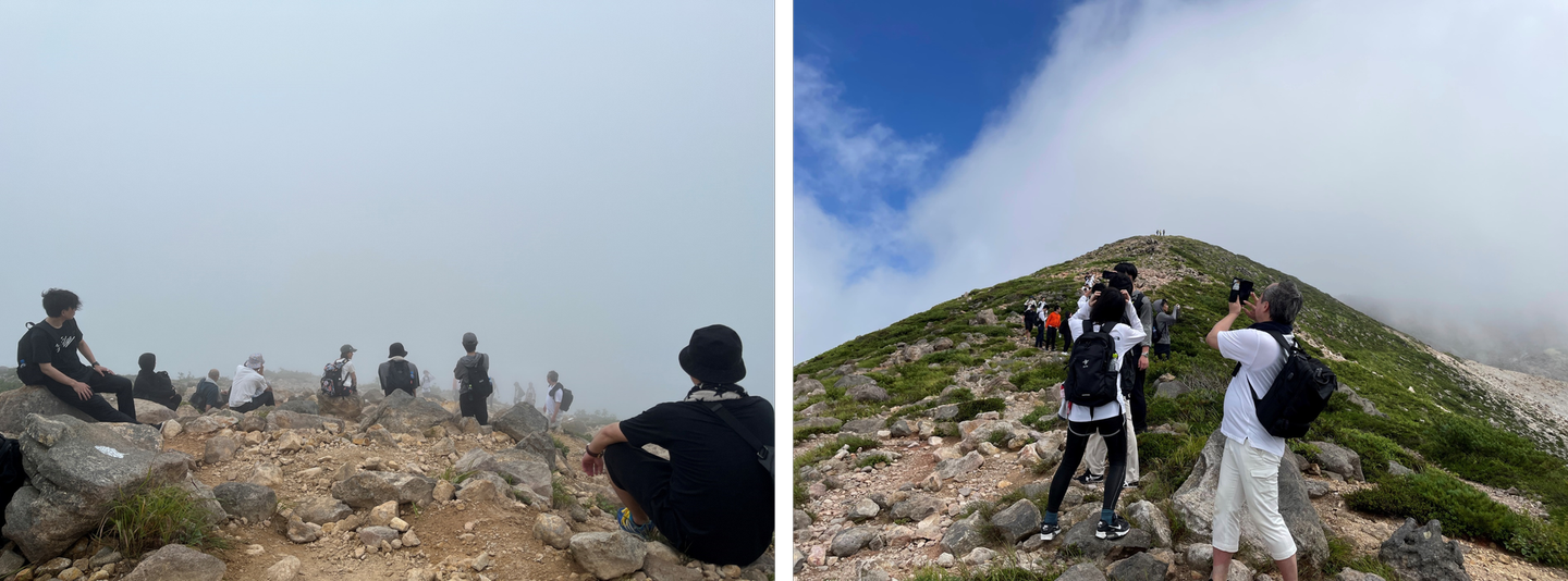 山の天気は変わりやすい。。曇ったり晴れたりを繰り返し、歩みを進めること1時間30分・・!ようやく頂上に到着🙌