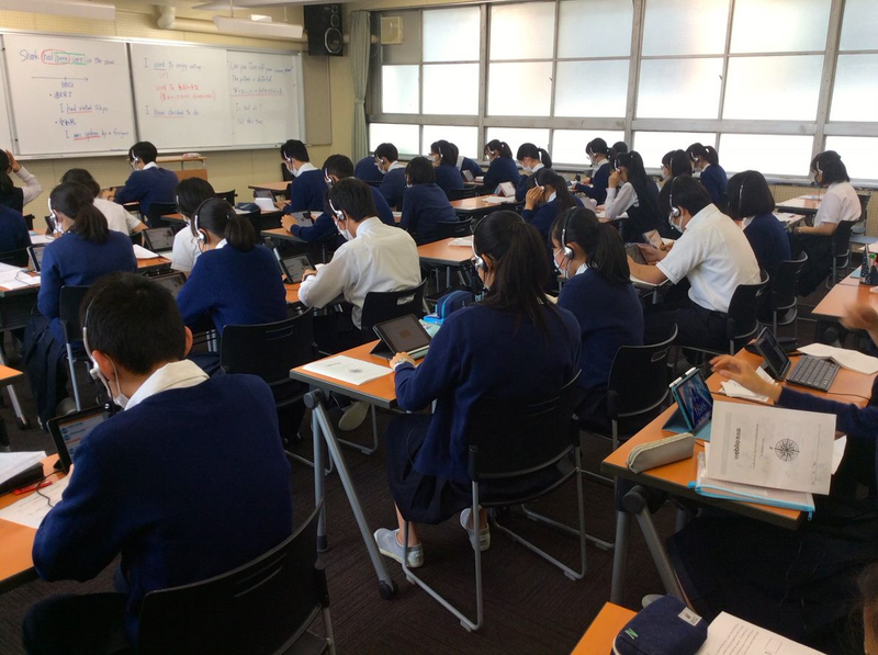 高槻中学校の生徒さんがオンライン英会話レッスンを受講する様子