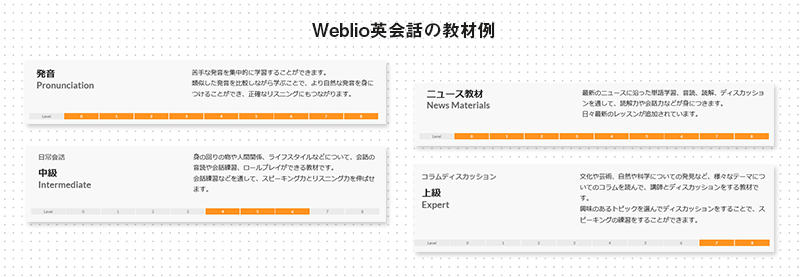 ニーズが高いものをリサーチして拡充しました。発音教材、資格対策、旅行英会話、日常会話、ディスカッションなどですね。特に人気の高い日常会話は入門レベルから上級レベルまでまんべんなく増やしています。