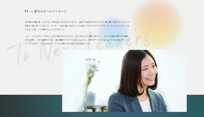 22年卒採用では「NEXT LEADERS」というテーマを掲げ、「第二の創業期を迎えたGRASグループに新しい風を吹かせてくれる存在」を迎えることを目標に採用活動を進めました。