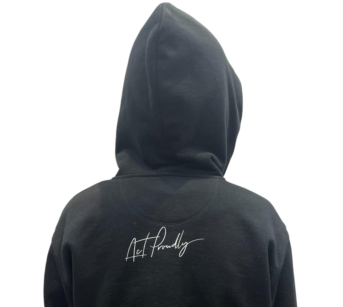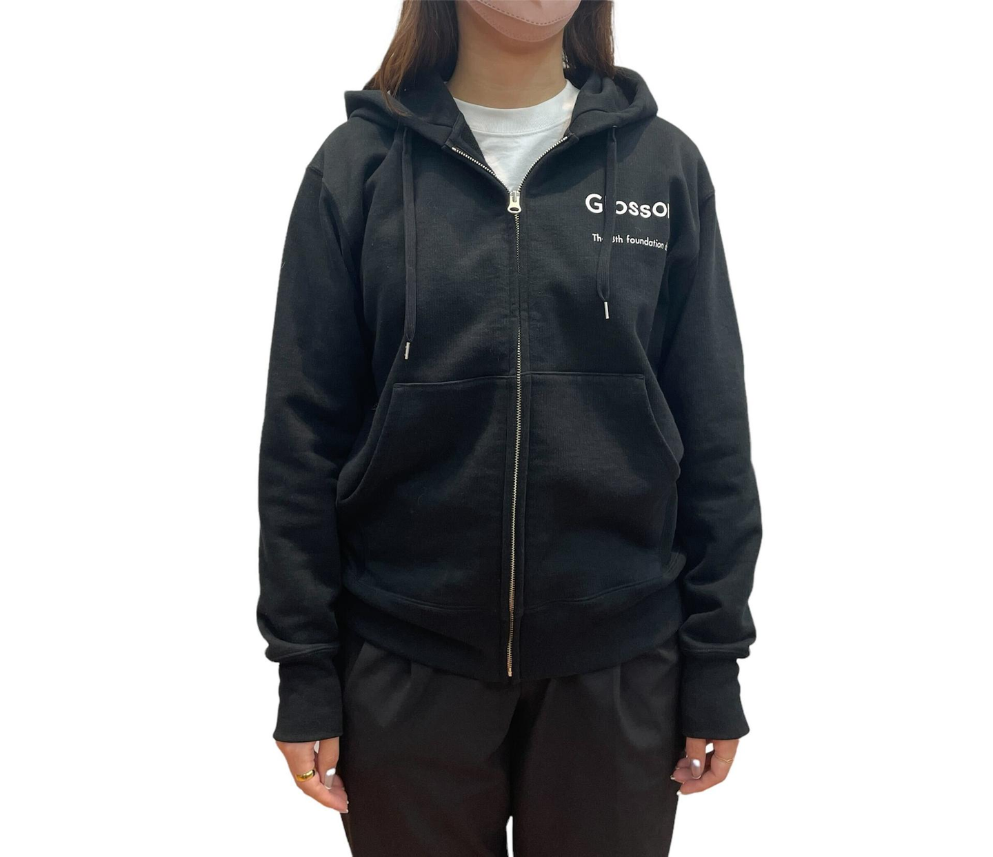 フードを被るとGlossomの精神である、Act Proudlyのロゴが!