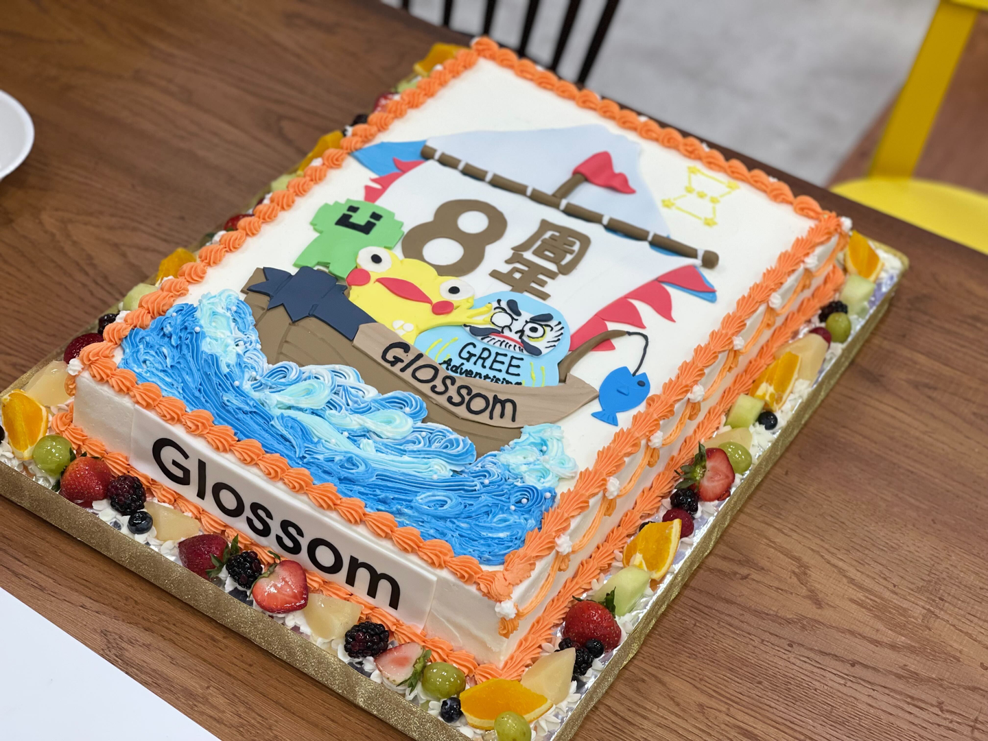 当日はGlossom内で使用している、マスコットキャラクターを盛り込んだケーキでお祝いをしました!