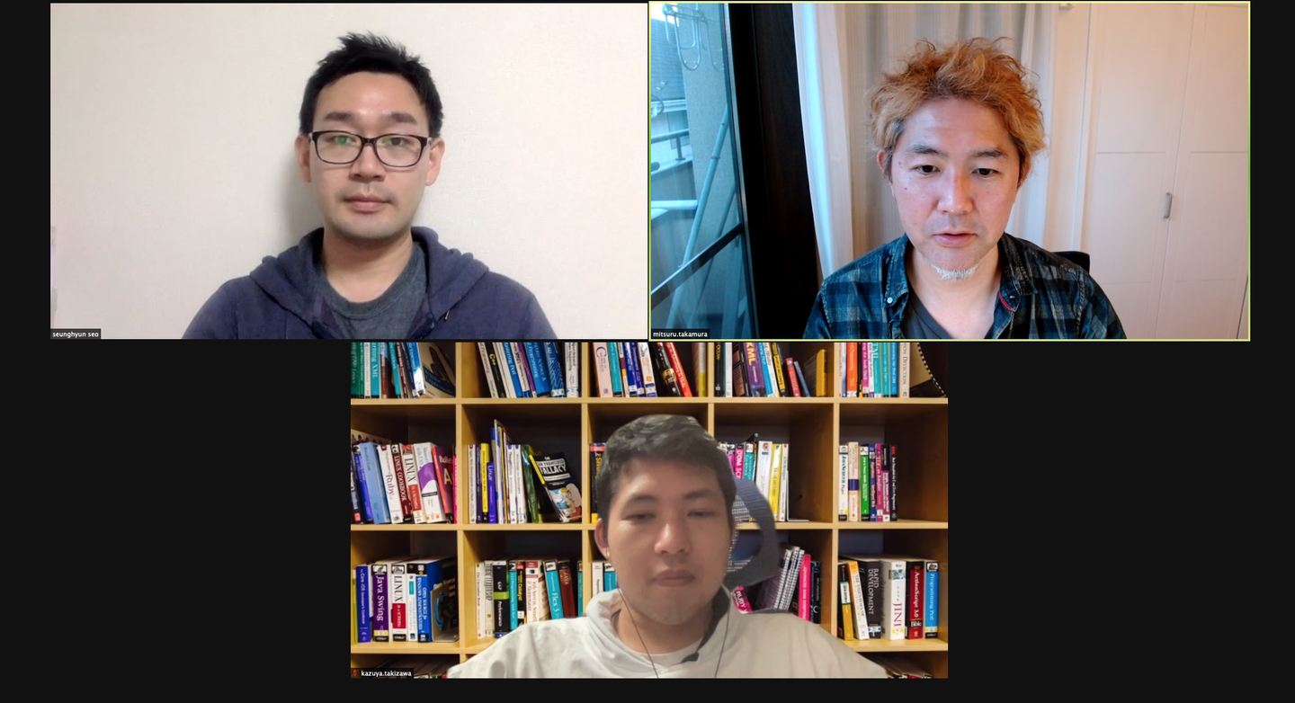 お話を伺ったのは徐 承賢(写真左上)、髙村 充(写真右上)、瀧沢 和也(写真下)の3人。