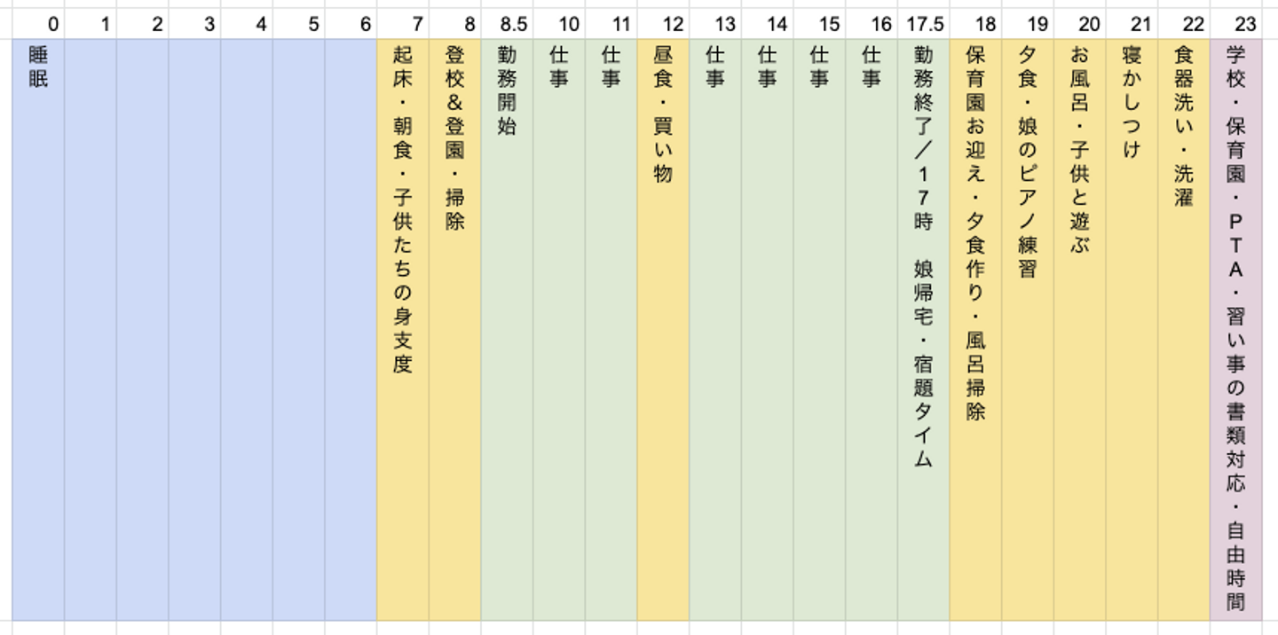 小学生の娘が17時ごろに帰宅するため、私の仕事が終わるまでは宿題をする時間にしていて、その後18時ごろに幼稚園に通う子のお迎えをして、そこからは家族との時間を過ごしています。