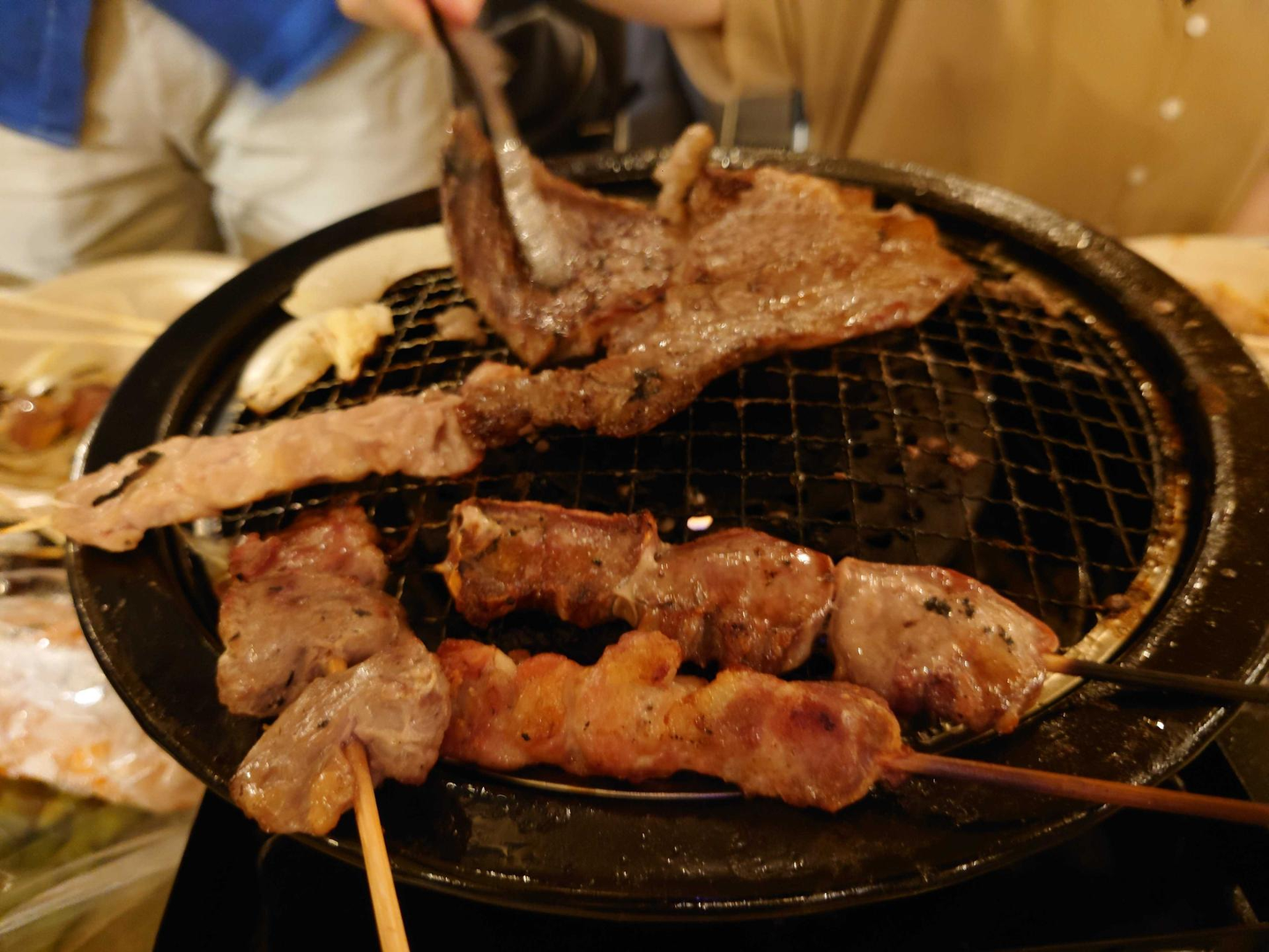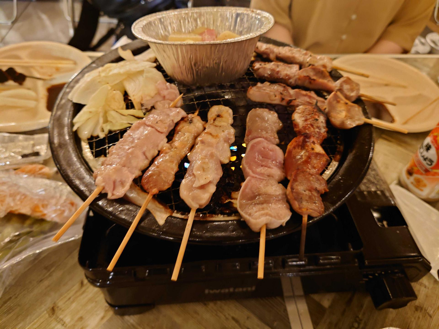 飲みながら、焼きながら。