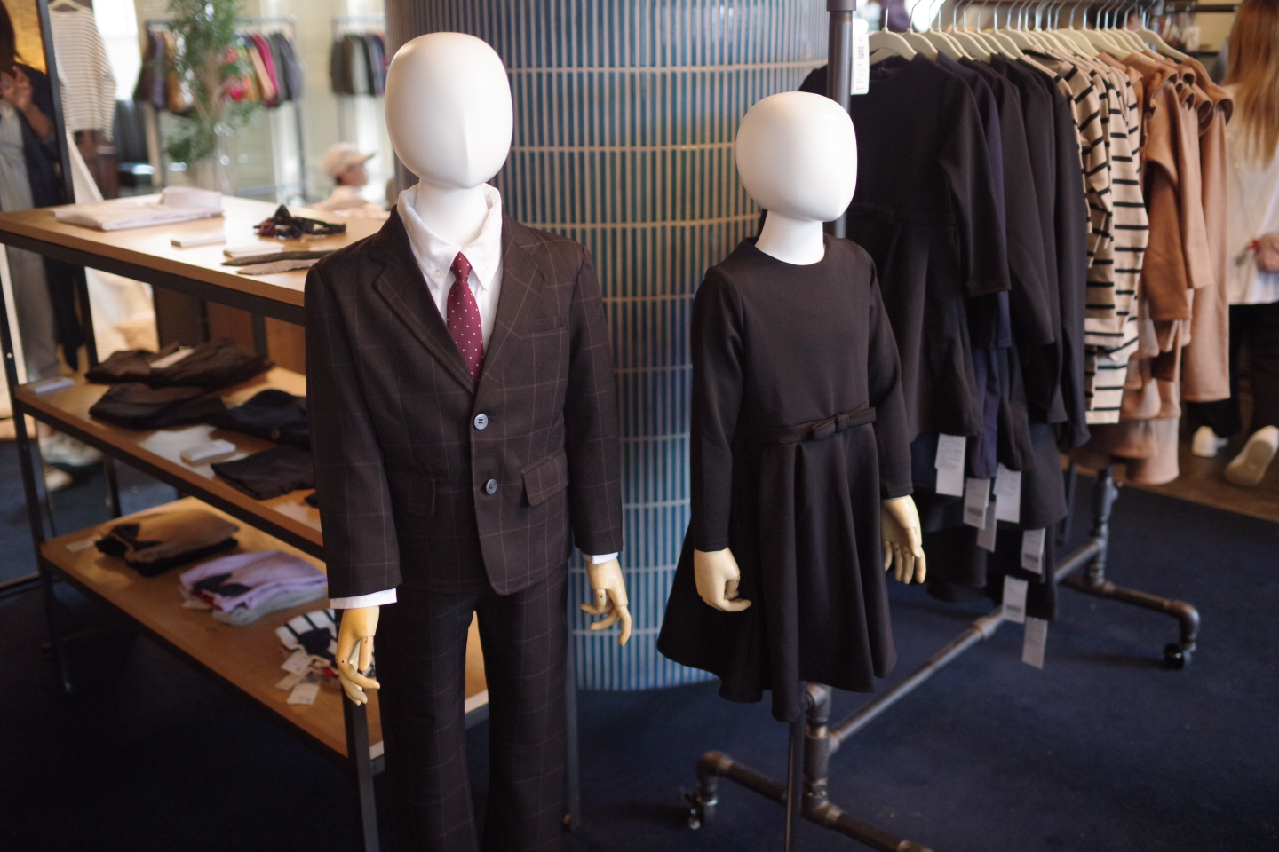 店内には試着できるスペースも用意!80~160㎝サイズまでを取り揃えました。
