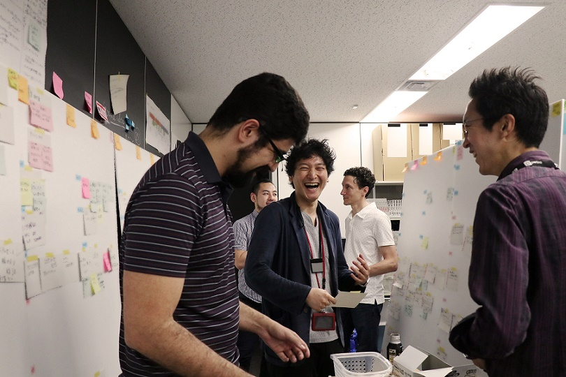 ホワイトボードと付箋が至るところにあり、しょっちゅうどこかで予定にない議論が勃発しているのも、弊社の特徴かもしれませんね。
