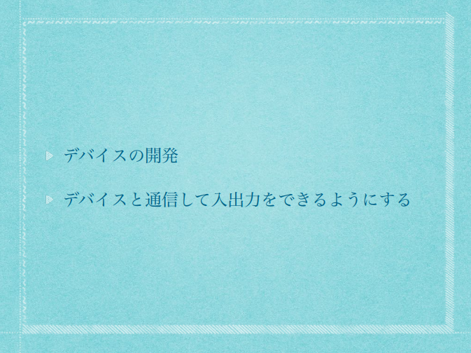 もう少し、ちゃんと説明すると、基本的に①デバイスの開発と、そのあとに②デバイスと通信して入出力をできるようにするという2段階に分かれます。