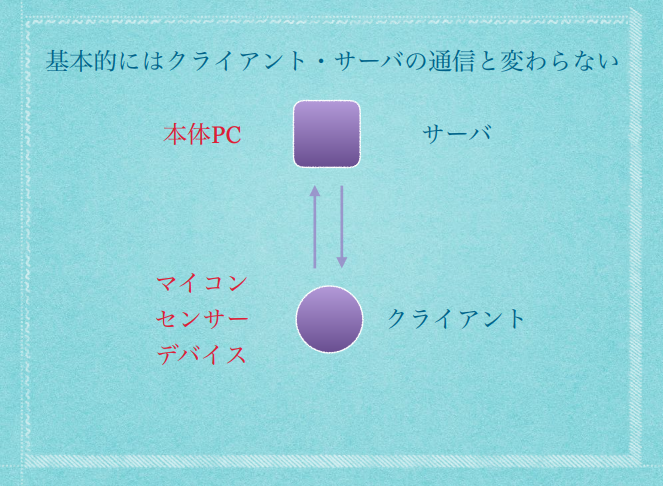 だけど、これをもう少し近い距離でやっているのがファームで、マイコンとかセンサーとかのデバイスというクライアントから、メインのPCというかCPUというサーバーに飛ばすようなもんだと思います。