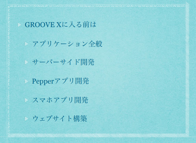 いまは、ファームウェアとか組み込みとか、主にソフトウェア側からハード側とのつなぎをやってます。ロボットつくってるっていうとよく人工知能がーとか言われます。たしかにうちにも壁に数式を書いてとまらなかったり、なんちゃら学習が〜とか悶絶してたり、論文の話を酒の肴にしてる、ちょっと変わった人達もいますけどね。でも僕は、あんまりわかってないんで。