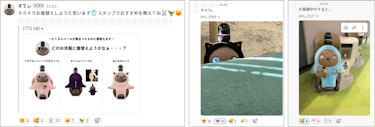 次第に、運用者からの投稿だけではなく、チャンネル参加者であるワーカー自ら、かわいいと思ったLOVOTの様子を投稿する様子や、所属オフィス・部署を超えたコミュニケーションが観察できました。