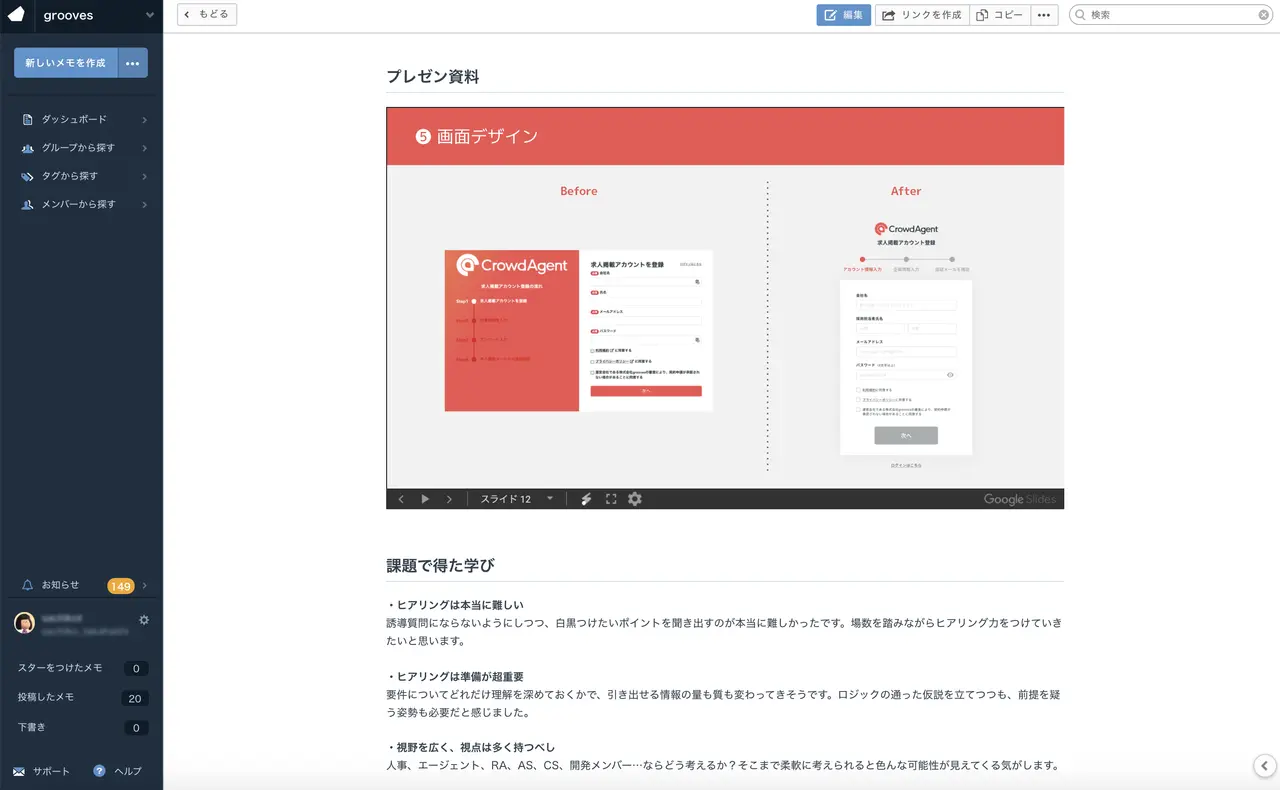 社内の情報共有ツールにドキュメントを投稿する形で、新メンバーから全社に対して積極的に情報発信をしてもらいました。