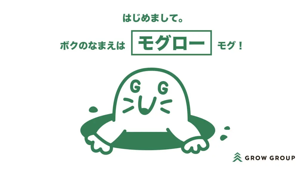 キャラクター公募の時の資料にも書いたのですが、モグラの「潜る」と、GrowGroupの「Grow(成長する)」を掛け合わせた名前です。