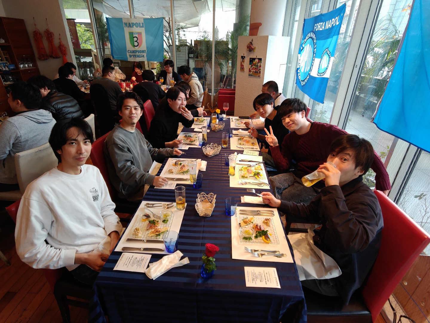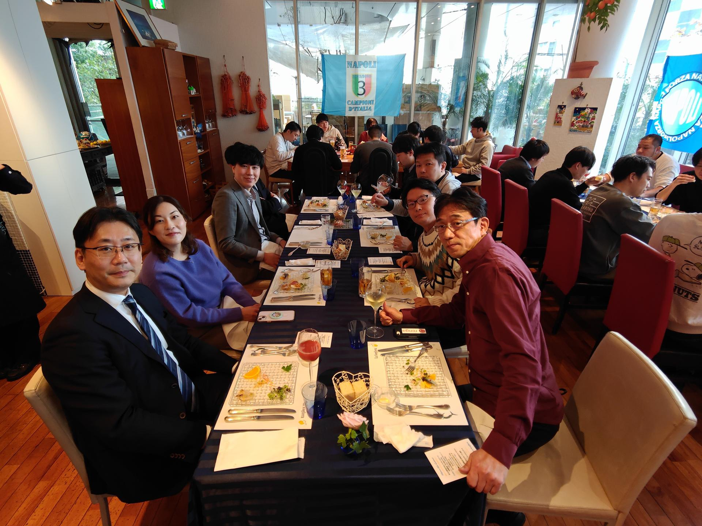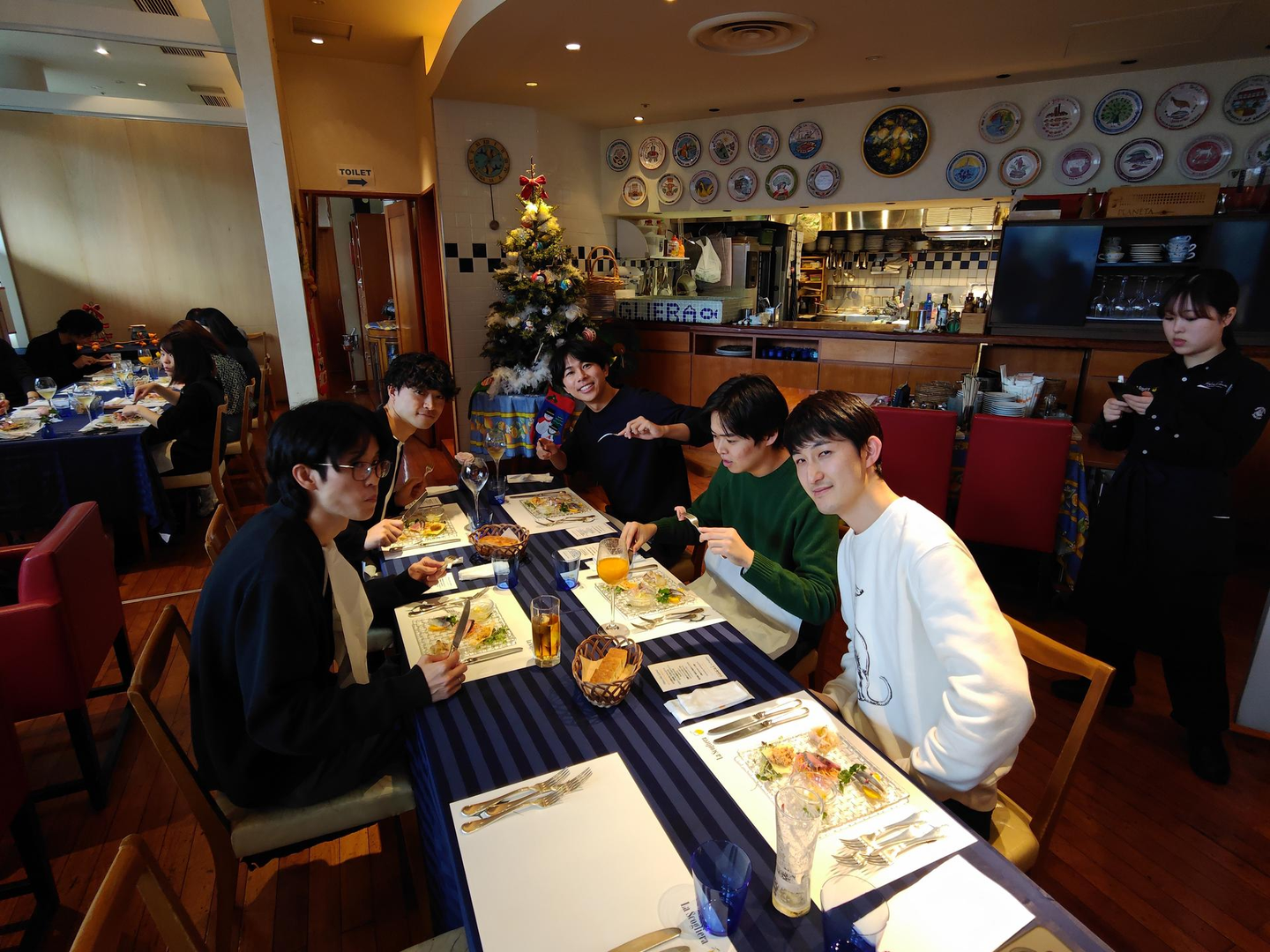 今年は会社オフィスの下にあるイタリア料理のお店で開催しました!