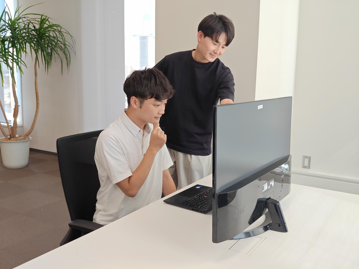未経験で不安のあったプログラミング学習では、先輩方からの的確な助言をもらえ、着実に研修を進められています。