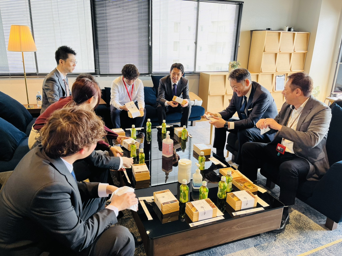 社長を中心にベテラン社員が新卒社員の皆さんとコミュニケーションをとり、少しリラックスしている様子がみられました。