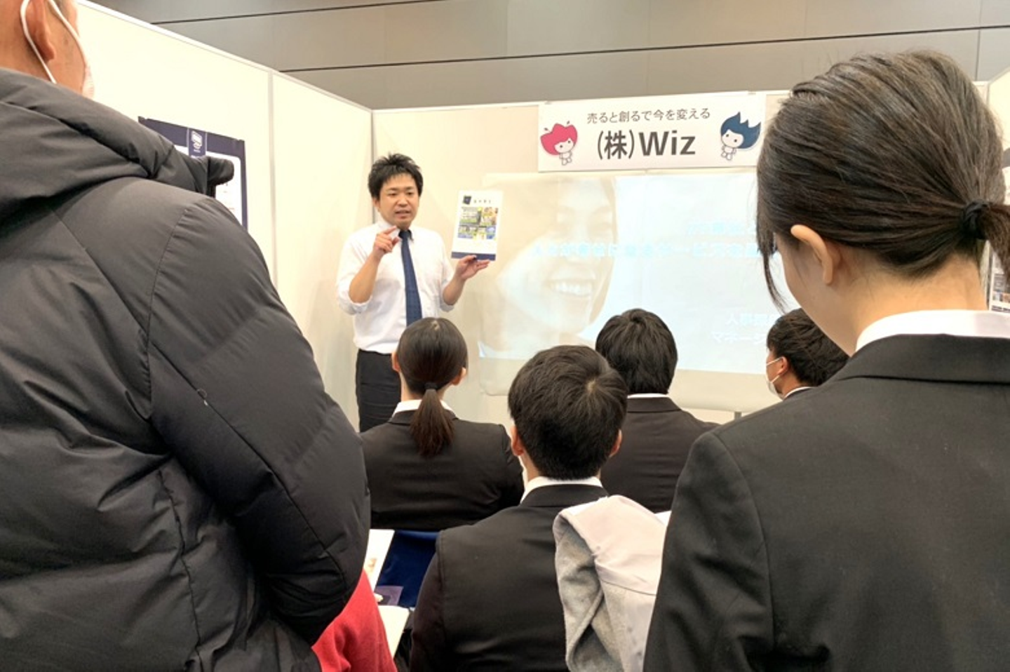 志望職種はまだ決まってないという学生がほとんどでしたが、“活躍したい!” “いろんな事ことに挑戦して成長したい!”という高い意欲を持っている学生が多かったです!また、Wizって知らなかったけど、話を聞いてみて興味をもちました!といってくれた学生も!!実際に今活躍している若手社員の中でも、スポナビ合説でWizを知ってくれて入社してくれた人もたくさんいますよ(^^)◎