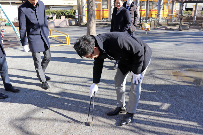 お子さんが集まる公園にあった大きな石を公園の隅に移動させているT部長♪
