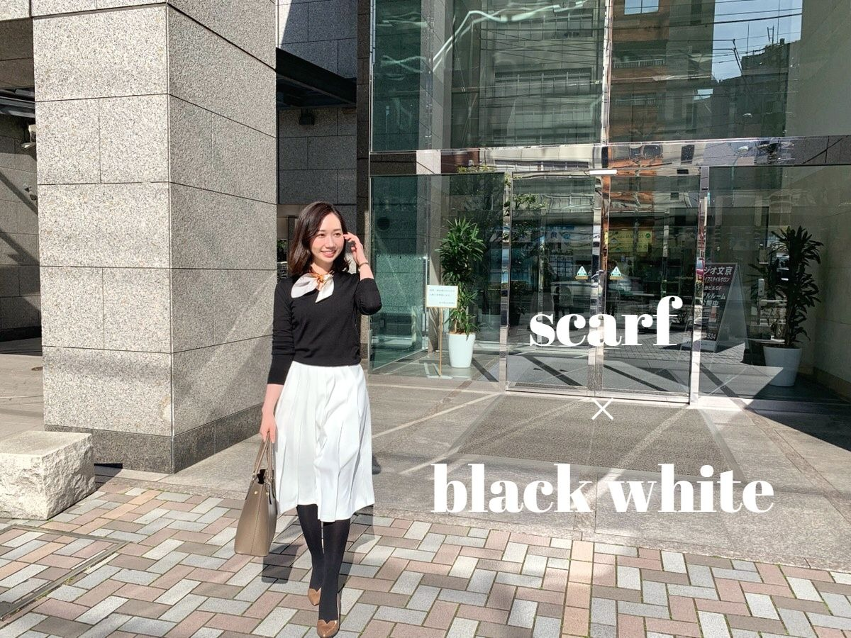 春のトレンドは「スカーフ」と聞いたので、おそるおそる巻いてみた。好評で嬉しかったー!
