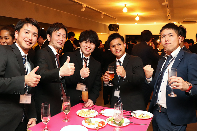 懇親会の後は参加者全員での集合写真と、支社ごとの記念撮影行いました。共に社会人としての第一歩を踏み出す仲間として、お互いに切磋琢磨していけるといいですね。