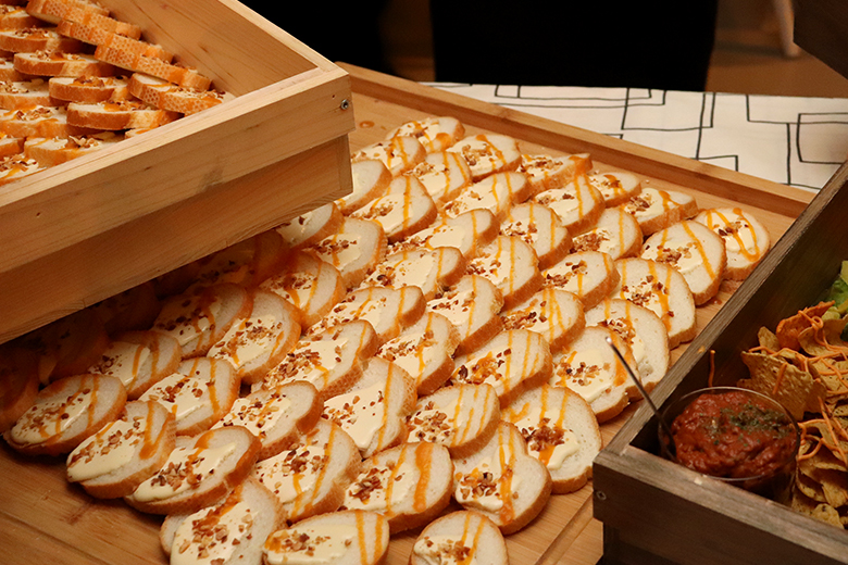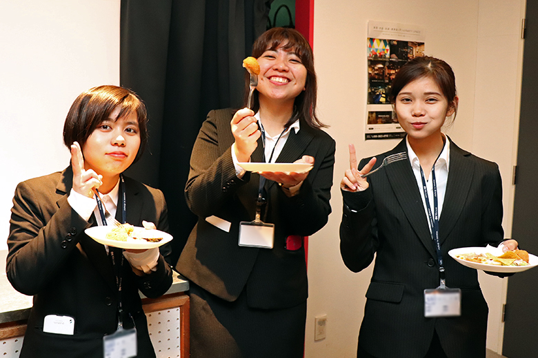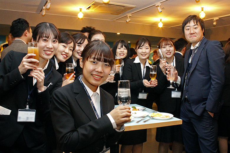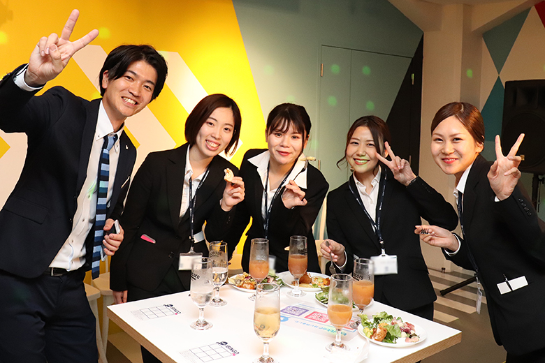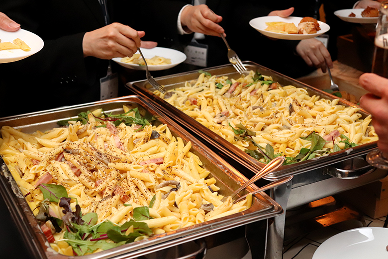 乾杯後は歓談の時間へ。美味しそうな料理が並び、新入社員の皆さんも箸が進みます。