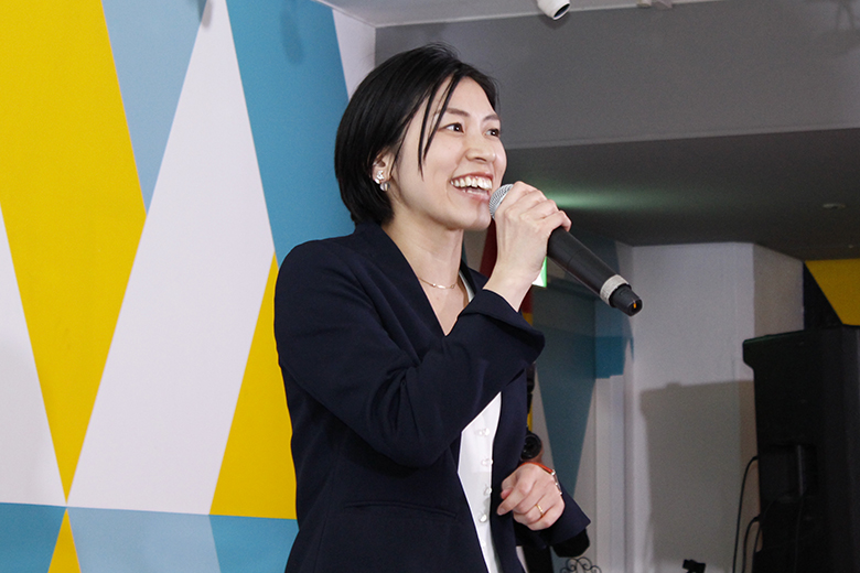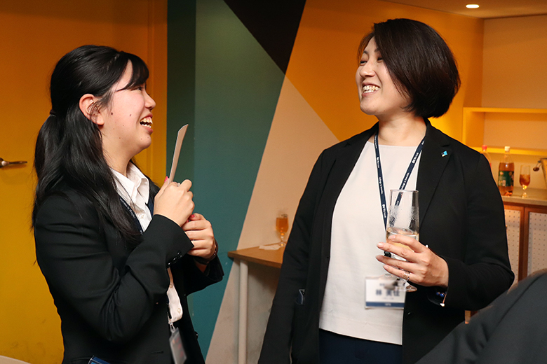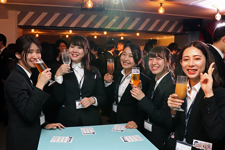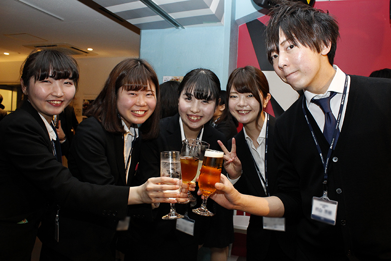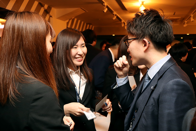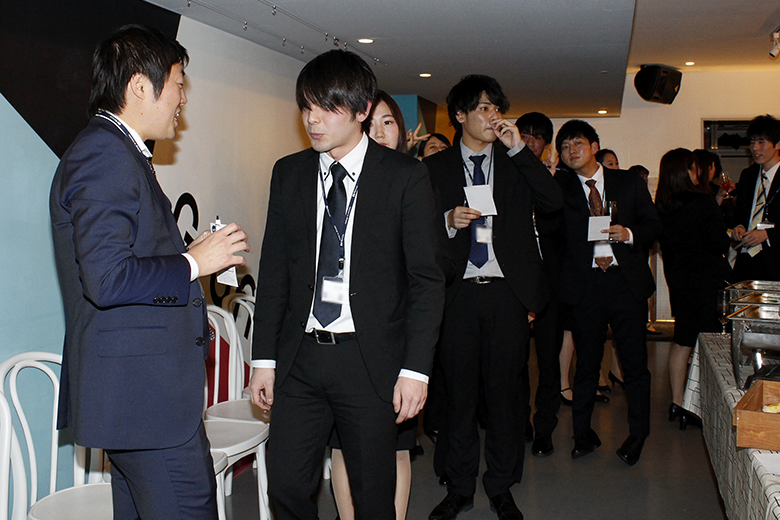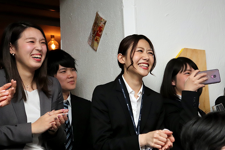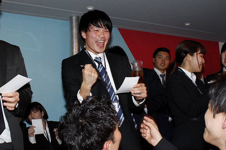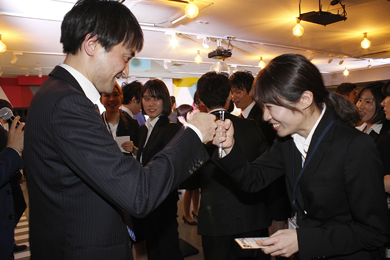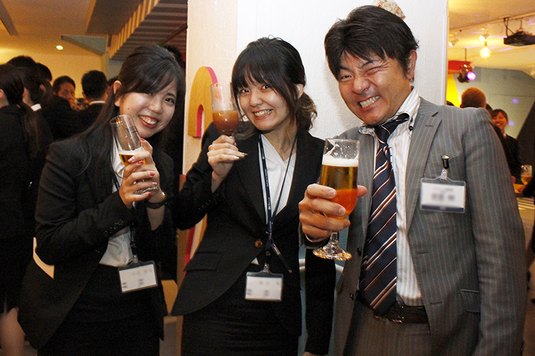 楽しい時間はあっという間に過ぎ、懇親会も終わりに近づきます。新卒採用を担当した澁澤課長と冨田課長、人事採用部の大森部長から、新入社員への激励と歓迎のメッセージが送られます。