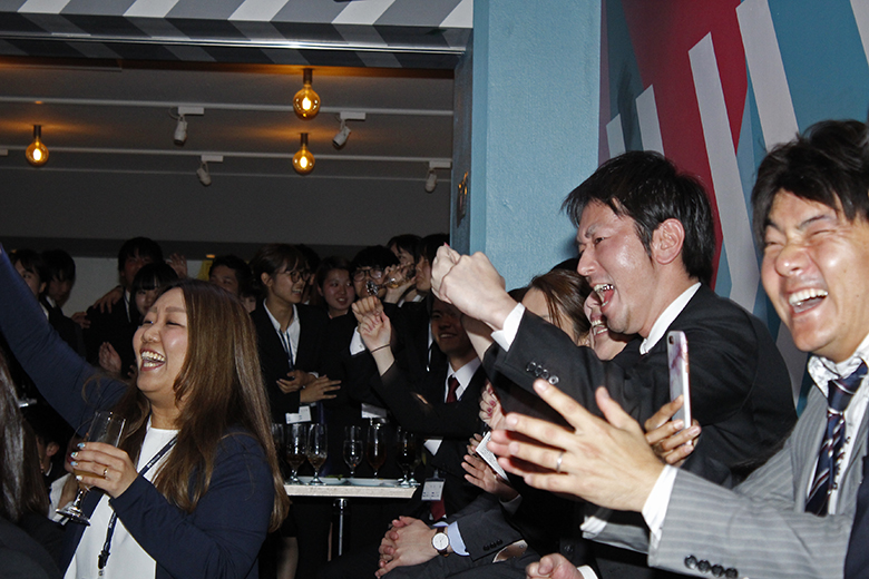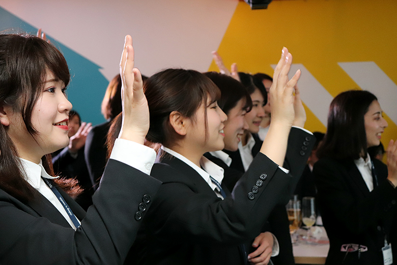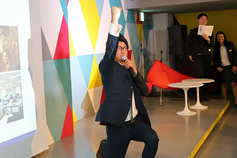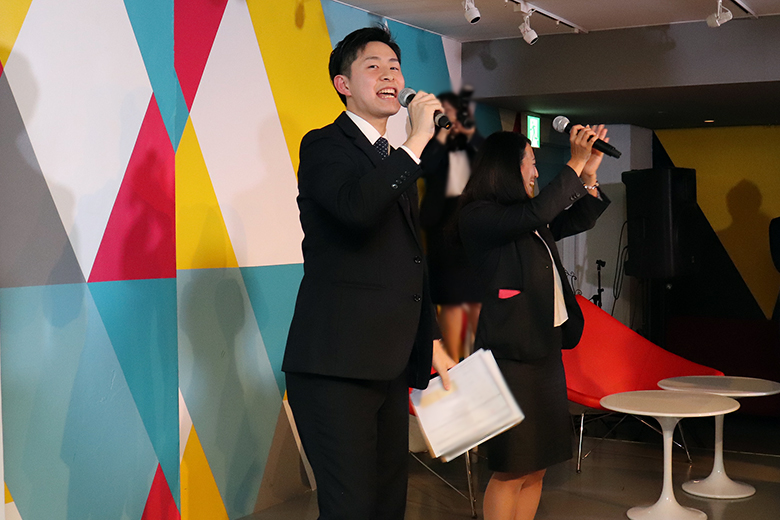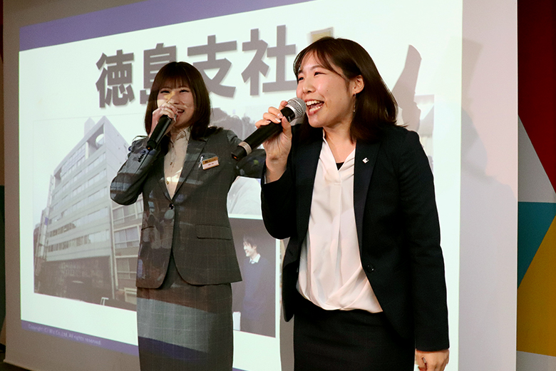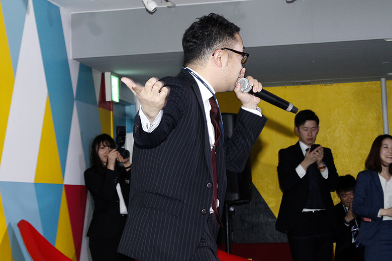 歓談タイムの後は支社紹介が行われ、各支社の支社長と人事が意気込みをアピール。歌を歌ったり、コール&レスポンスを挟んだりと、どの支社も個性に溢れ、それぞれの魅力がたっぷりと伝わってきました。