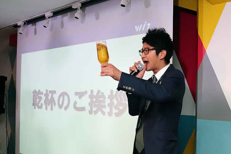 そして全員にグラスが行き渡ったところで、福岡支社長・山内次長の挨拶で一斉に乾杯!