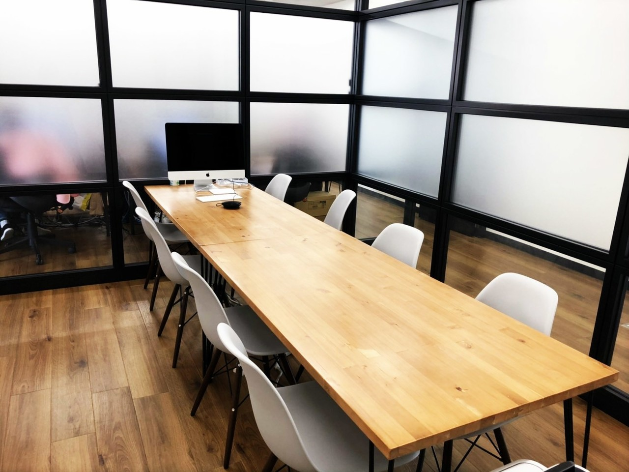 こちらはミーティングルーム。床とテーブルが木目調で統一されてますね!毎日、この部屋でミーティングや打ち合わせ、選考が行われているそうです。