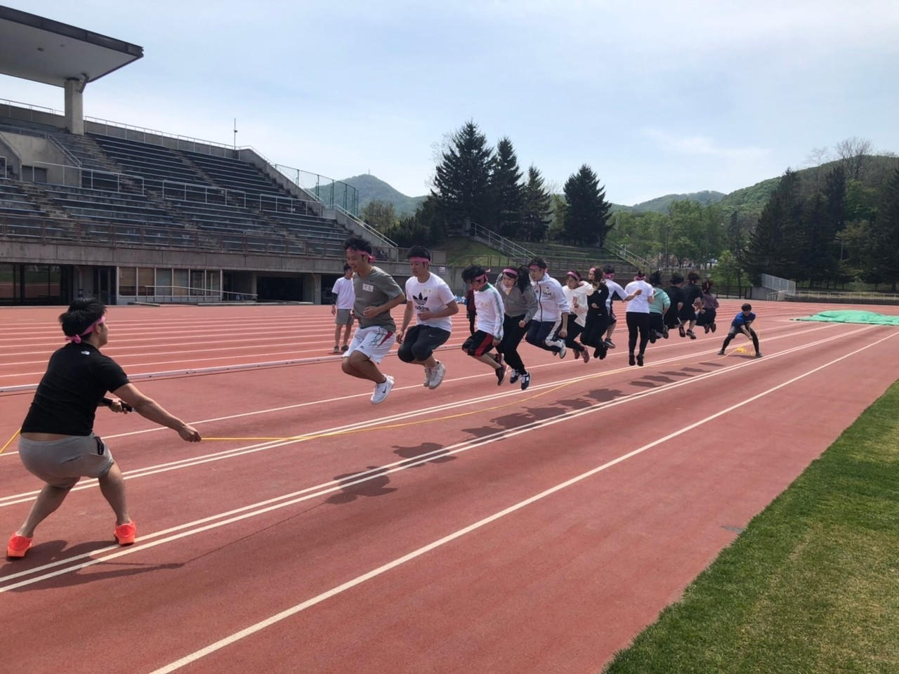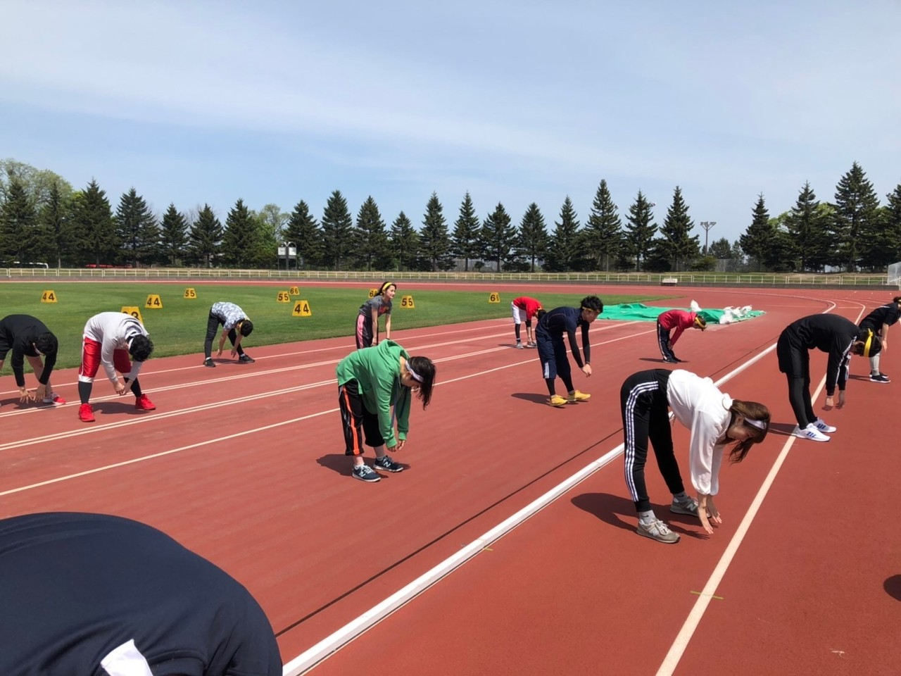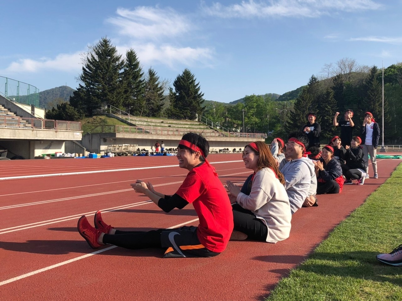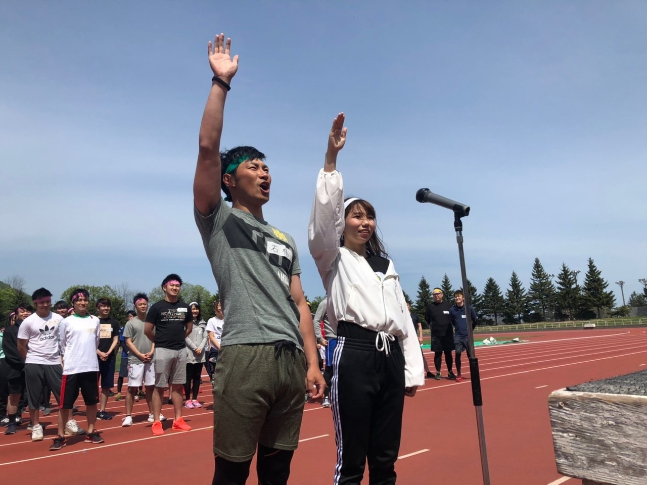 当日の天候は快晴!総勢96名の過去最大人数の中、最高のコンディションで挑むことができました♪元気いっぱいの選手宣誓をしたあとは入念な準備体操。本気モードが伝わります。