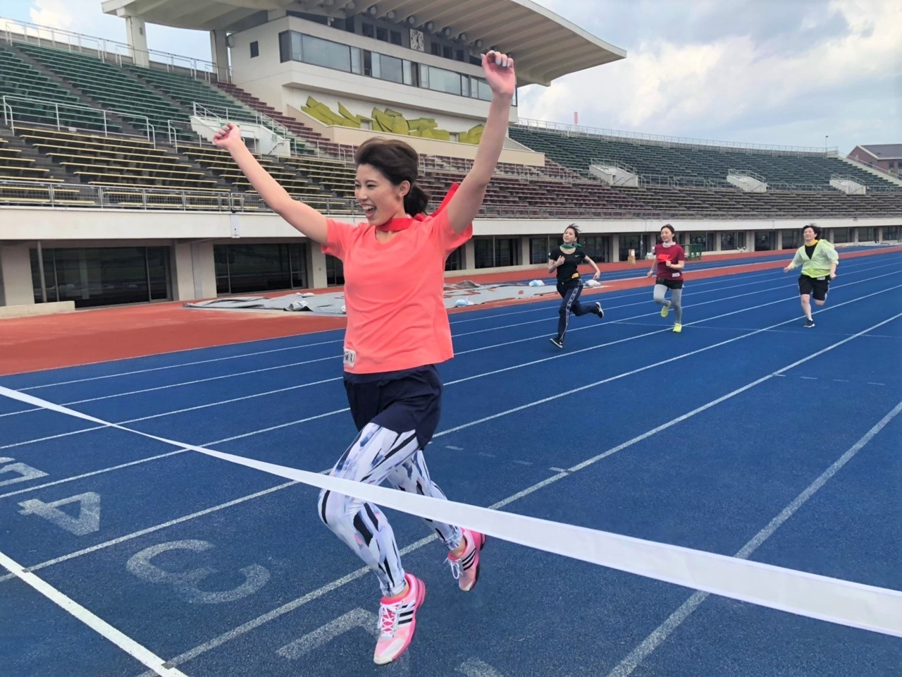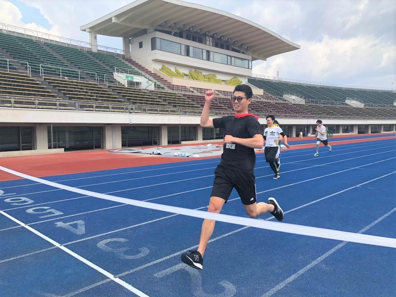 ゴールテープを切ったと同時に、仲間に抱き留められる感動のシーンも♪笑