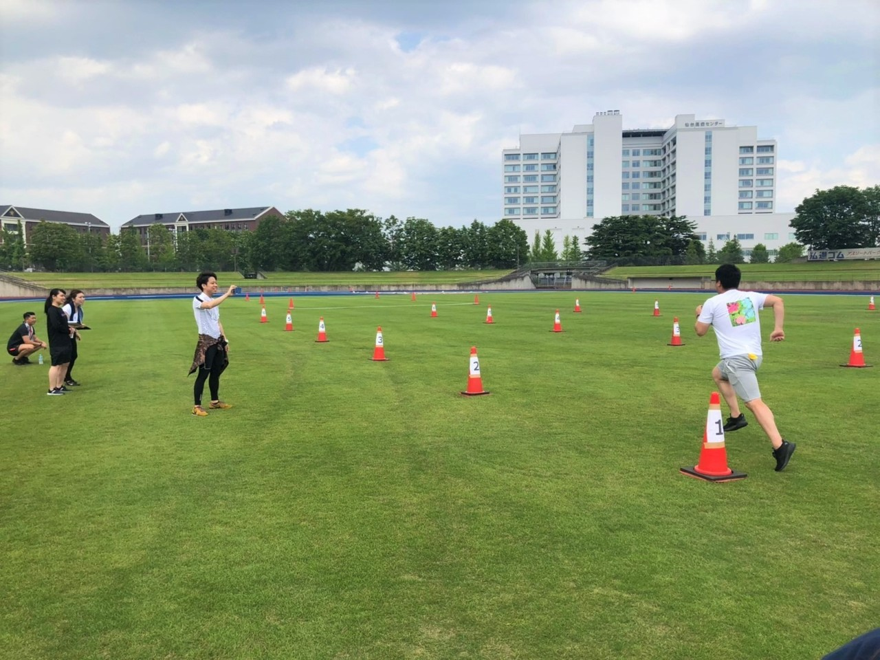 そして、出た目で勝負!!※サイコロの出た目の数のコーンまで走り戻ってきてバトンタッチするリレー方式です。