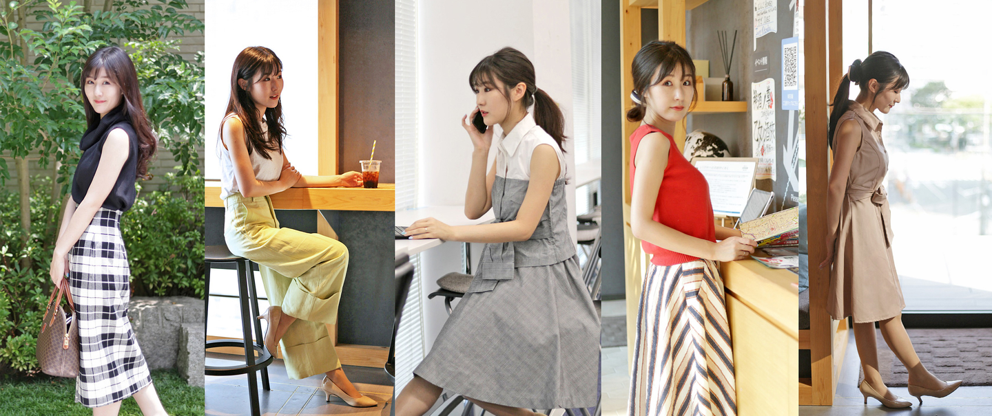 日々のコーデは、ちょうどいいきれいめ感を意識しています。地味になりすぎず、かといって派手すぎて浮かない、好印象なスタイルで。そして、ハレザOLにヒールはマスト。休日はペたんこ靴やスニーカーでもいいけれど、通勤にはやっぱりきちんと見えるパンプスで美脚度もしっかり意識します!