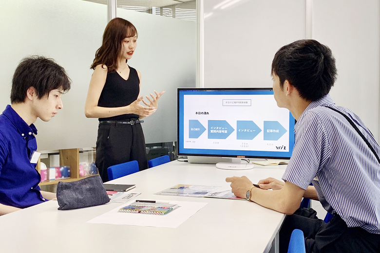 今回のインターンでは、「インターンに参加するなら、どんなインターンがしたいか」と言われたことが始まりでした。実際に、去年の7月ごろにWizの広報インターンに参加していたのですが、そのとき行われた、”インタビュー記事を書く”という内容をブラッシュアップしたものが経験したいとお話ししたところ、許可をいただくことができ、こうしてインターンの企画進行を務めさせていただくことになりました。