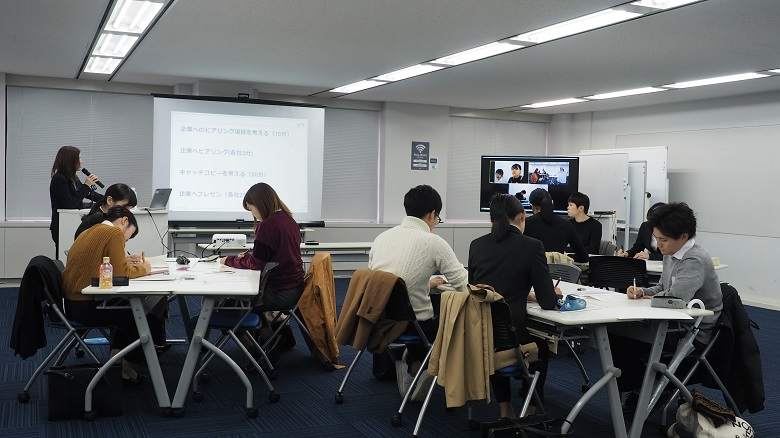 ※仙台・大阪と中継をつないでインターンシップを開催している様子