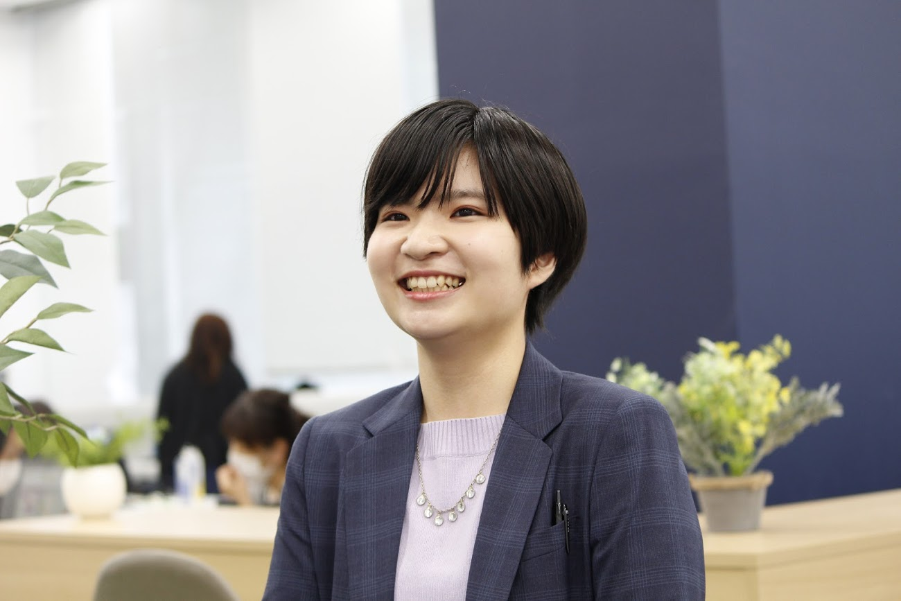 上司Y:“しっかり者”というイメージの柳下ちゃん。いち早く会社説明もできるようになって、自ら目標を持って取り組む姿勢に刺激をもらいます!責任感が強くて、業務を頼むうえでも、柳下ちゃんに頼めば間違いない!という安心感があります。これからもっともっと突き抜けて活躍していくのを楽しみにしています!