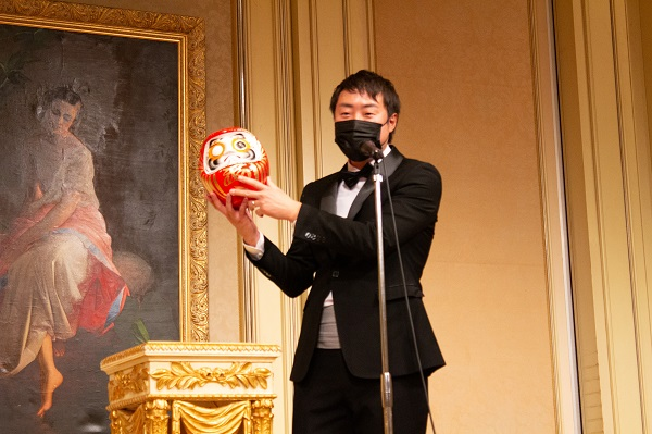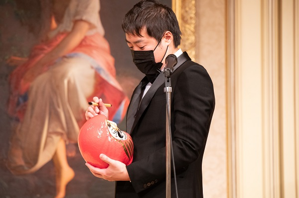 最後に代表・山崎より閉会のご挨拶と、1年の決起を願って達磨の目入れが行われました。